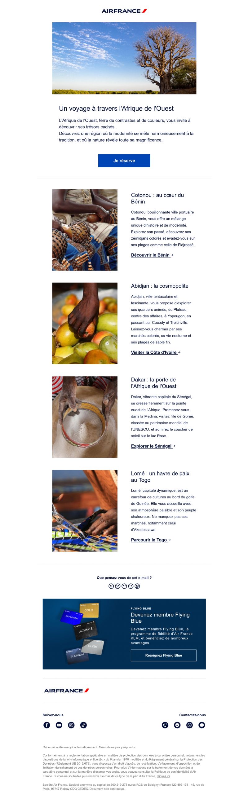 L'étonnement est grand à la réception ce vendredi 06 Juin 2024 de la newsletter promotionnelle d'Air France : L'AES ne semble pas à leurs yeux faire partie de l'Afrique Occidentale..